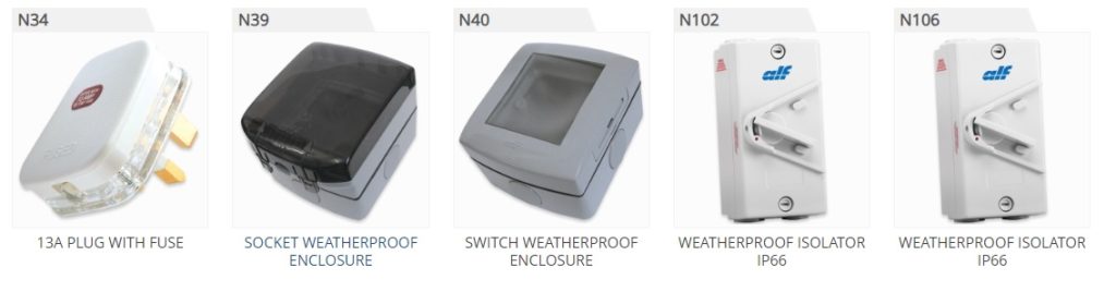 We offer various supplementary accessories, including 13A fused plugs and weatherproof socket enclosures.